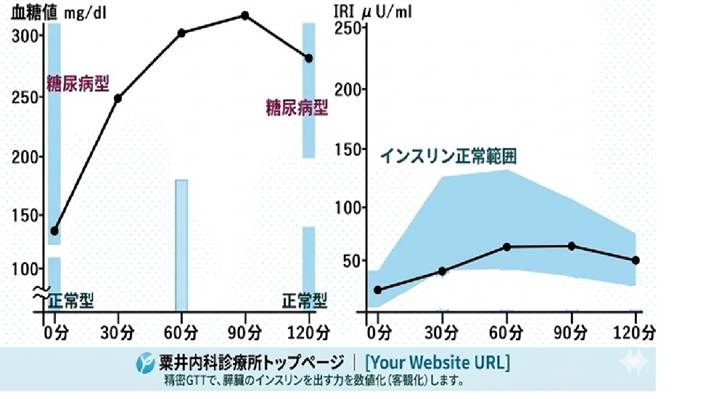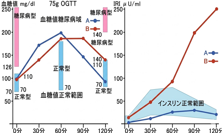 血糖と同時にインスリンも測る精密GTT検査が必要となります。